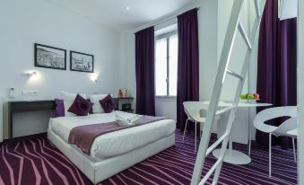 Je descend toujours dans cet Hôtel façon Airbnb quand je viens à Nice , J'y ai loué récemment un studio, charmant ,bien décoré, avec une très grande télé et une kitchenette avec tout ce qui faut pour cuisiner ... L'emplacement était très pratique à 5 mn de la mer (de la promenade des anglais) et au départ de la rue piétonne qui traverse le quartier animé de Nice ,on peut aussi aller facilement au Cours Saleya ( endroit sympa pour ceux qui connaissent )en longeant le bord de mer par la Promenade des Anglais .. Le studio était très propre et la rue avec les voies cyclable très silencieuse .. Je continue à y retourner après d'autres expériences dans d'autres endroits où j'étais toujours moins satisfait .. Je conseille aussi particulièrement un petit saut en Italie à 40 mn de voiture si vous en avez une ... j'en profite pour faire part d'une découverte , un bon resto , "Le Bistrot du Port , ...