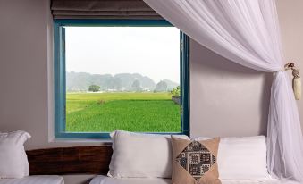 Отель расположен в удалённом месте, в шаговой доступности только Hang Mua. Можно взять велосипеды, и доехать до Trang An Boat tpir. До ресторанов можно дойти, минут 20 пешком.