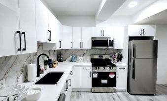 This amazing piece of heavenly comfort offers a spacious cozy sleeping arrangements on a comfortable pillow top King bed and a queen bed, full bathroom, private, secured entrance, self-check-in and complimentary snacks and breakfast. Nestled in the Irvine Creek neighborhood, you are 10 minutes drive to the YEG airport, 4 minutes drive to the Nisku industrial park, 5 minutes drive to South Commons for easy shopping. Easy access to Anthony Henday and Highway 2. The suite is ideal for long stays. About 4 different golf courses in the area. Close to Amazon warehouses and the Nisku industrial hub. Cineplex movie theatre just minutes away.About pets:No pets allowed.About checkOut:Check out before 11:00 AM.About children:Children allowed: ages 3-17.About checkIn:Check in after 4:00 PM.About smoking:Smoking is not permitted.About minBookingAge:Minimum age to rent: 18.About events:No events allowed.