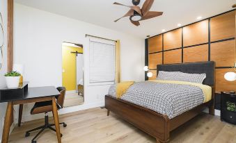 Location, decor, host communication - all could not have been better. This mid-century modern with its bold and cheerful color scheme and wonderful furnishings throughout were everything needed to make an awesome stay. Plus, a back patio that was an added bonus. You will not be disappointed.
