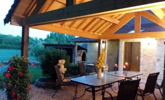 Le gite est très agréable, aménagé avec goût avec des espaces bien conçus (séjour, chambre, espace repas). Dans le jardin, nous avons particulièrement apprécié l'aménagement prévu pour déjeuner, protégé par une tonnelle et offrant une vue magnifique sur la campagne environnante.L'accueil par notre hôte Sophie fut très sympathique.