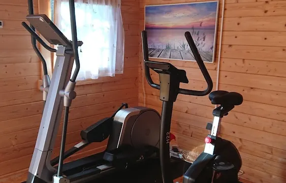 The bathroom with shower has 2 windows. In additional storage room are air conditioning as well as enough space for storing suitcases etc. An attractive garden with garden furniture invites you to relax and crickets.