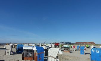 Restaurants with East Frisian cuisine, shops, bakeries and ice cream parlors can be reached in a few steps. Haus des Gastes, Kurmittelhaus, reading room with current newspapers, seal breeding station, mini golf course and the adventure pool "Ocean Wave" (wave pool with sauna) are about 300 meters away.