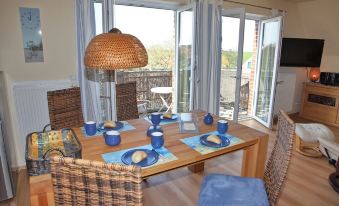 From the balcony and from the two bedroom windows you can see the sandy beach, the sea and in good weather the islands of Juist and Norderney.