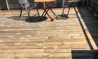 Zur Wohnung gehört eine große Dachterrasse , mit Stühle ubd Tisch, die wir aber wetterbedingt nicht nutzen konnten. Die Vermieterin ist sehr nett .Parkplatz ist vorhanden. Wir waren sehr zufrieden, Wohnung liegt sehr zentral, Zum Strand ca 10 Minuten gemütlicher Fußweg
