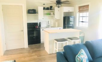 Ting'um, sits in private grounds surrounded by trees with a view of Carey's Pond and visiting water birds. This cozy cottage has Queen size bed and an open floor plan, with the a small, but fully functioning kitchen, a dining area, and a lounge area with TV and a couch.