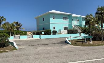 Right on the beach with beautiful turquoise water as the back drop to everything. Beach is somewhat rocky with washed up corals, but walk-able for shorter distances. Condo is well equipped and comfortable for two couples.