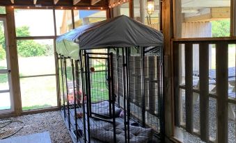 Dog friendly, with 4x8 kennel in the screened in breezeway and 2 crates available for inside. (Pet fee $20/night. Please check box under number of guests when booking.)