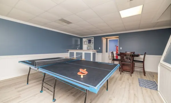 The basement is also full of fun! There are lots of games, including trivia, foosball, Golden Tee, ping-pong, a poker table, and corn hole.