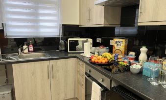 Clean and tidy, friendly staff who willing to help all your needs. Spacious room loaded with all essential staff. , modern clean kitchens ,tea ,coffee and cornflakes available also clean modern bathroom . Definitely would recommend.