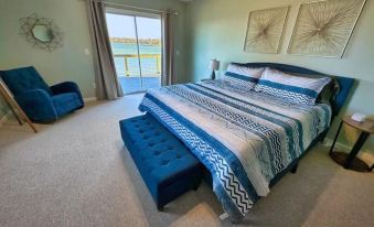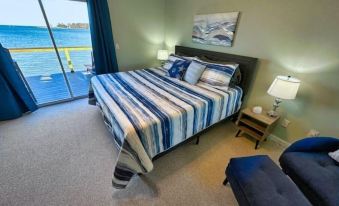 The house has two floors with a traditional and spiral staircase as options. When you walk in through the mudroom, you'll walk into a massive kitchen with eating area and bar where enough coffee to start your tip will be waiting for you. In this kitchen is also the "keeping" room area with electric fireplace, couch, chair, and additional coffee tables. Downstairs also contains the massive family room and dining room area along with 2.5 baths and a king bedroom. A sun room wraps around the river side of the house with glass windows and multiple seating areas to enjoy the perfect morning sunrise with your coffee.