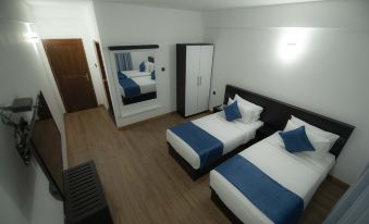 The property claims to be four-star, but the rating feels misleading. It is a small hotel with limited rooms. My family of four (with two kids) stayed in Room 205. The positives: the room was spacious, sheets and toilets were clean, and the separate wet/dry toilets were a nice touch. However, toilets lacked hooks, tissues were missing, and the balcony was directly accessible from the ground—raising security concerns. The TV didn’t work initially, the phone had no number to reach reception, and flies were an issue in the room. I had to carry my child to reception to ask for help. A staff member replaced the TV antenna and got it working, but their advice about the flies was simply to leave the window open since they were “harmless ones.” The real issue was during checkout. While we were having breakfast, staff interrupted us to say large bath towels were missing from our room. We explained we never received any and even showed the towels we had used. Despite this, they insisted on checking our luggage. To clear the matter, I agreed to unload our cab and let them check. When no towels were found, instead of checking with housekeeping, they went on to search even the baby diaper bag and my laptop bag—clearly incapable of hiding bath towels. This unnecessary and humiliating process delayed us by over an hour. What could have been an average stay turned into a bitter experience due to poor customer service and misplaced priorities. A hotel that spends more effort accusing guests than providing hospitality does not deserve to be called four-star.