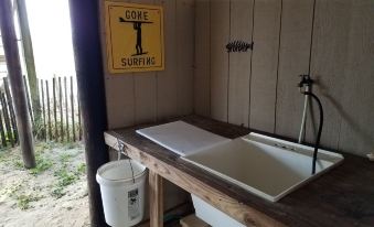 Open living, dining, and kitchen, covered porch, W/D, D/W, 5G WIFI, smart TV, and H/C outside shower. Den includes a 55" Samsung smart TV and Master includes a 32" Roku smart TV. Master has adjoining, private bathroom.