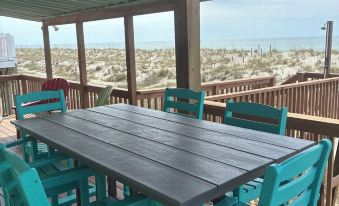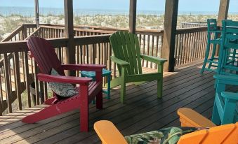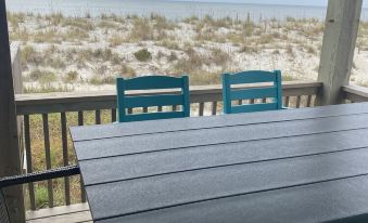 There are 2 bedrooms downstairs include upgraded luxury pillowtop mattresses. The master bedroom has a king bed and right outside the door is a full bath. Bedroom 2 on the this floor has a twin over full bunk bed which can accommodate 3 people. On the top floor there are 2 bedrooms both queen with a full bath in the middle. The house has a new HVAC unit. There is high speed Internet (WiFi) throughout the house as well. Enjoy time on the back deck and listen to the waves crash. For those hot days, enjoy the cool shaded sitting sitting area. The outdoor shower is perfect for rinsing off the sand from a fun day at the beach.