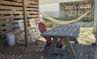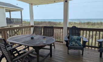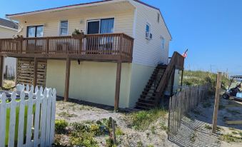 Escape to our charming beachfront 2-bedroom cottage in the heart of Long Beach, Oak Island. Immerse yourself in the tranquil ocean views and the soothing sounds of the waves from the comfort of your private balcony. Spend your days soaking up the sun on the nearby Oak Island Beach, just a short walk away, or explore the lively Ocean Crest Pier, just a 3-minute drive from your doorstep or 1.3 mile walk on the beach.. For a change of pace, venture to the Southport Marina, a 19-minute drive away, and discover the local shops and restaurants. Back at the cottage, you'll find a fully stocked kitchen with all the amenities you need to whip up delicious meals, including a stove, oven, refrigerator, grill, and more. Unwind in the cozy living room, equipped with a smart TV and free WiFi, or step outside and enjoy the outdoor play area and beach . With its prime beachfront location, charming decor, and array of thoughtful amenities, our cottage is the perfect retreat for your next coastal getaway.About pets:No pets allowed, service animals permitted.About checkOut:Check out before 10:00 AM.About children:Children allowed: ages 0-17.House it is not child proven!.About customRules:Please keep the outdoor shower close! Don't keep the door open if the Ac is on, Stay of the dunes! Don't leave food outside..Load dirty dishes before checking out. Take the garbage out. Property it is not child proved.,Garbage day is Wednesday and Saturday. Recycling is Saturday.Please put the beans to the street and bring them back after they been emptied..About checkIn:Check in after 4:00 PM.About smoking:Smoking is not permitted.About minBookingAge:Minimum age to rent: 25.About events:Events allowed: family gatherings, birthday parties, weddings.Maximum event attendees: 10.
