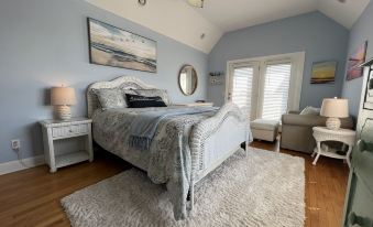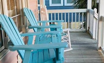 This 3 bedroom 2 bath home is tastefully decorated with a beautiful coffee porch off of the primary bedroom, king in upstairs primary, 2 twin beds upstairs and queen in downstairs, large wrap around porch screened in the back. TVs in all bedrooms. OLED TV in living room. Great views 50 yard walk to the beach. Kayaks available for use. Fenced in back yard. This is third row home in the middle of two really nice beach accesses. Dog friendly for up to 2 dogs medium size.