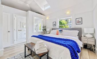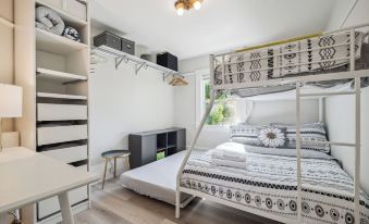 Ascend the beautiful staircase to the second floor, which offers three bedrooms and two bathrooms This level features five beds plus a convertible couch, with all bathrooms modern and tastefully designed The highlight is the master bedroom, boasting high ceilings and an ensuite four-piece bathroom equipped with a touchless bidet