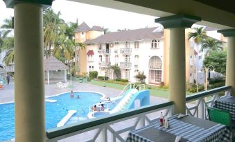 This beach apartment has convenient on-site amenities such as a convenience store, bar restaraunt and a night club.