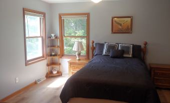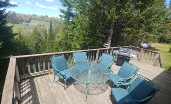 Overlooking Ocqueoc River and quietly nestled back in the woods is your vacation retreat. Perched on the South Bank, the Back Deck provides spectacular morning and evening views of the river a stone's throw away.