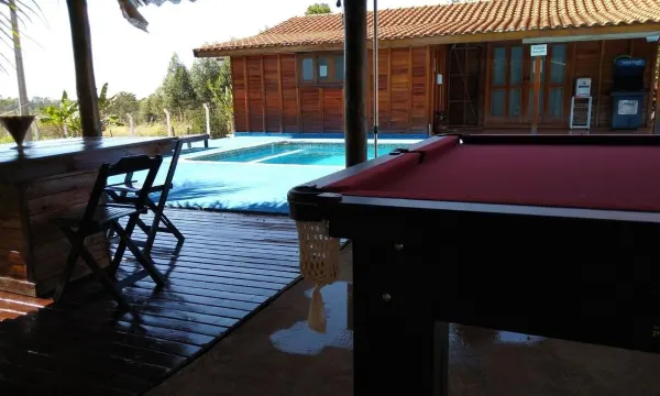 Farm, new wooden house with 3 Bedrooms. air conditioning, fans, kitchen with household electric, microwave, electric oven, stove, among other appliances, living room with TV 45 LCD, DVD player, sound system, (sound only environment) Swimming pool large, locker room (mini fazendinha) wild animals, ducks, angola chickens, peacock, barbecue, electronic game, accommodation for 13 people, we have Wi-Fi (a delicious cheeses, paes and candy for sale) we accept pets only porte small. 1Vestiário (bathroom) near the pool. does not provide crisp beds About pets:Pets allowed.About checkOut:Check out before 11:00 AM.About children:Children allowed: ages 0-17.About checkIn:Flexible check-in available (contact host in advance of arrival).About smoking:Smoking is not permitted.About events:No events allowed.