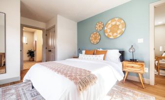Queen bedroom with en suite bathroom and washer/dryer on the main floor.
