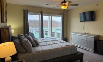The condo has 2 Bedrooms and 2 Full bathrooms with sleeping accommodations for up to 6 guests. The master suite features a King bed, a walk-out to the deck overlooking the Lake, and a private bath with an oversized shower. The second bedroom offers a comfortable Queen bed and the second full bath is just outside the door. A queen-sized sleeper sofa is in the main living area. Both bedrooms have cable televisions and ceiling fans. Prepare delicious meals in the fully-stocked kitchen and grill, with everything you need, from new appliances to essential cookware. The condo also has dedicated internet service with wi-fi, not a shared service like a hotel or resort.