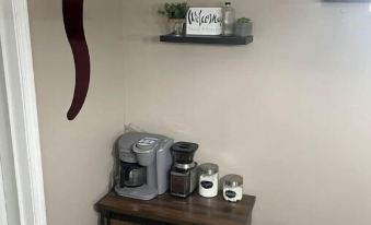 *We provide complimentary coffee flavors of different types of quality coffee , hot coco, marshmallows, and even cappuccino. The coffee maker is new and will do pods or ground coffee beans. Also a nice coffee bean grinder at the coffee bar that currently has fresh Jamaican Blue Mountain whole coffee beans in it.