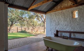 Sweeping views of the Murray River are admired from large deck and dining outdoors is encouraged with dining and lounge settings. Reconnect and stargaze around the fire pit or take a long soak in the claw foot bathtub which is uniquely housed in the old cottage which has been lovingly restored.