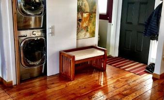 Our chef's kitchen is built for family and friends to gather around our huge kitchen island and counter-space and comes with a Wolf gas range/double griddle/2 ovens, a Breville Oracle barista coffee maker, kettle, new microwave, a Breville air fryer/toaster oven, a Thermomix blender, Cafe 2-drawer dishwasher, and several chef’s appliances. We make your stay easy and convenient by supplying basic pantry items, condiments, cleaning, and other amenities. Our in-house H3 washer/dryer adds convenience, as does ample free & safe street parking. EV charging is also possible during your stay with our driveway connection available.