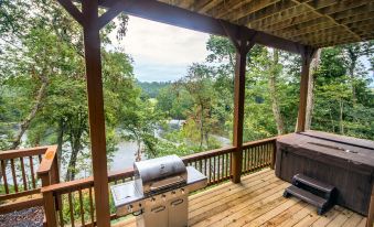 Tree Top is a brand new purpose-built vacation rental that just opened in August 2017. It's near our Fish Trap and Green Castle cabins and, like them, is also river-front, sitting up high above the river with an area to walk down to the river's edge. It's part of an 18 acre "fish trap" location that was used by ancient American Indians hundreds of years ago.