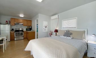We stayed 4 nights with our 2 small dogs. The cottage was just the right size and the location was calm and quiet. The whole yard was fenced so our dogs were able to run around.