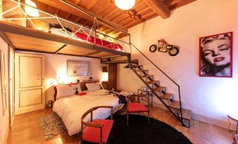 Apartment with attention to details, small and welcoming with all comforts. Romantic for couples and ideal for families with children. Room with wooden mezzanine, double bed under the mezzanine and two singles above. 60s style kitchen with super equipped kitchen, bathroom with shower and laundry area. Ceiling air conditioning and central heating. Wi fi and excellent quality linen. Located in the historic center of one of the most beautiful hill towns in Alta Valdera. On the second floor and when you open the door you will immediately breathe in the Tuscan air, its traditions and its customs