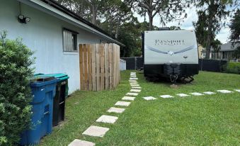 Modern RV with free WiFi parked in a private home close to shoppings, restaurants and entertainments of Palm Bay and Melbourne: