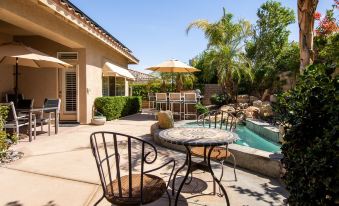 This is a beautiful 4-bedroom, home with 3.5 bathrooms a great outdoor area, and a large, private spa. If you're looking for a private quiet and away from any traffic a stylish three-bedroom home plus a separate one bed casita with a home office, easy freeway access and walking distance to Freedom Park, stores, gym and great restaurants, this is the place for you! Enjoy the desert's warm air, dry temperatures, sunny blue skies, open spaces and quiet nights, in our very modern and well-equipped home located in a gated upscale Palm Desert compound.