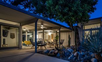 Tucked back from the road in a private sunken desert oasis, magically elevated above the valley floor, this breathtaking 1964 classic post & beam mid-century modern home blends with the environment at every turn. From the private desert enclave at the front to the unhindered views of the valley, mountains, and sunrise from the pool area at the back, this 3-bedroom villa provides a natural environment for the utmost in relaxation, paired with all the modern amenities for a vibrant vacation. PS#041842