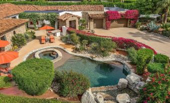 This expansive 4,500-square-foot villa is a modern take on a classic hacienda, expertly designed for resort-style living by renowned designer Barclay Butera. The home comfortably accommodates up to 10 guests, making it ideal for families, couples, or friends seeking a luxurious desert getaway.