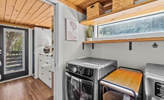 Step into a minimalist sanctuary where less is truly more. Escape to the peaceful seclusion of Blackbird: a sleek, minimalist tiny home tucked away in a wooded property just outside Mineral Wells. With its modern black exterior and large windows, this retreat is immersed in nature while offering a simple, uncluttered space to relax and recharge. Surrounded by the tranquil sounds of the woods, Blackbird invites you to leave the world behind and embrace the serenity of nature.
