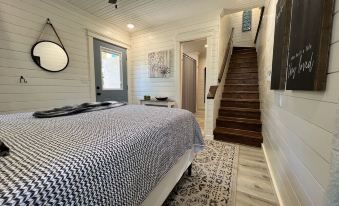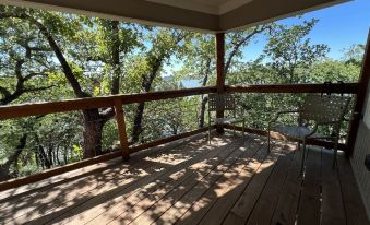Take it easy at this unique and tranquil getaway. Tiny Cabin in the trees, with huge private entertaining dock. Fire pit overlooking the lake. Space to relax, cook, fish, and enjoy the cooler weather. About pets:Pets allowed: dogs and cats (limit 2 total).Please do not leave un-attended pets in the cabin..About checkOut:Check out before 11:00 AM.About children:Children allowed: ages 3-17.Nearby lake. Heights without rails or protection..About checkIn:Check in after 3:00 PM.About smoking:Smoking is not permitted.About minBookingAge:Minimum age to rent: 18.About events:No events allowed.
