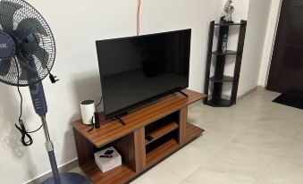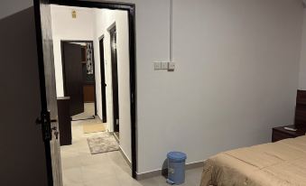 Guests will have access to the entire floor upon reservation. Each floor includes a master bedroom with a king bed and a second bedroom with two twin beds, comfortably accommodating four adults or an entire family. Each floor features a bathroom and a kitchenette equipped with essential utensils, such as a microwave, toaster, electric kettle, hot plate, refrigerator, porcelain dining sets, and silverware. Free cable TV is also provided for your entertainment.