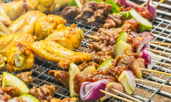 お昼はBBQで、鶏の串焼きがおいしかったです。あとはマレーシア料理、焼きそば、チャーハンなど。