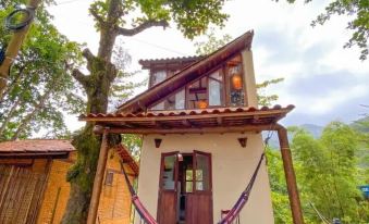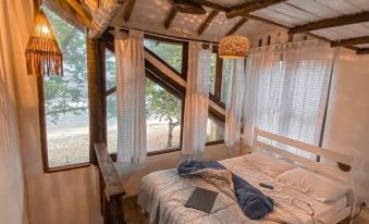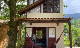 Rustic chalet on the seaside. Simple but comfortable. Offers basic structure needed for your stay. On the ground floor kitchen - with fridge, stove, cutlery and utensils for preparing breakfast and simple meals - bathroom with electric shower, Santos Dumond staircase (steep) one bedroom with two double beds. Beautiful sea view.