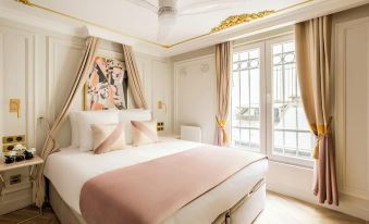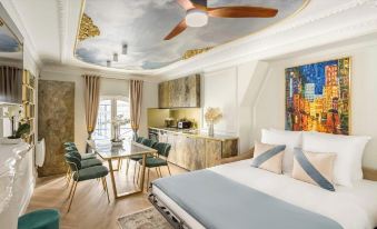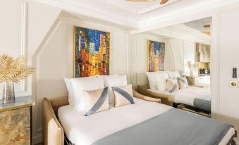 Welcome to your exquisite Parisian home, ideally located just moments from the world-renowned Louvre Museum and the enchanting Le Marais district. Situated on the esteemed 1st floor of a historic Parisian building dating back to 1890, this luxurious apartment offers a serene escape after a day of exploring the treasures of Paris.