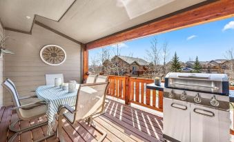 Upon entering the townhome, you are greeted with an open living area with high ceilings and beautiful wood floors. A fireplace invites you to settle in the comfortable seating on those cool nights, and perhaps enjoy a movie on the big screen TV. The large windows look over a large common area and let you soak in Park City’s beauty.