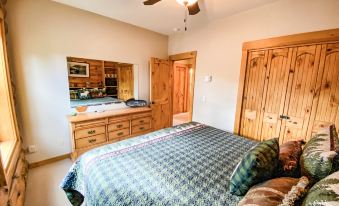 The Central Bathroom offers a toilet, standard vanity, a jetted jacuzzi tub/shower combo so you can choose to start the day with a quick and refreshing rinse or you can sink in for a long, hot soak after all the activities a day in the Colorado Rocky Mountains may afford.