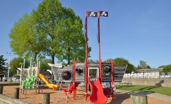 L'aeroporto più vicino è Muskegon County Airport, che dista 50,0 km dall'hotel, in macchina circa 42 min..Come arrivo dall'aeroporto più vicino a Staterooms 2N, Waterside View, heated pool, near Holland State Park Beach?