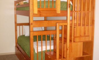 Our 3 bedroom unit has its own private balcony as well as an open floor plan with beautiful views overlooking the marina and Lake Macatawa. The Master bedroom has a king size bed. The second room has a king size bed with an attached room with a bunk bed. The third bedroom has a queen size bed and bunk bed. Each bedroom has a TV and an attached bath. The unit also has a laundry room, a living area with a sleeper sofa and a spacious kitchen with high-end appliances.