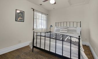 HILLSIDE HACIENDA is in the ideal location, only blocks to the downtown core which features renowned restaurants and the park square. This Spanish bungalow is located on desirable Chestnut Street on the west side of Paso Robles. This two bedroom, two bath home has been recently built with a Spanish flair. The kitchen is fully-stocked and features quartz countertops and subway tile with an adorable bistro table for two. An attached sunroom allows dining for six. This lovely home is in a quiet neighborhood, and sits on a hill overlooking downtown.