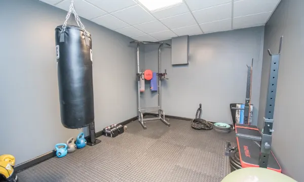 Keep it simple at this peaceful and centrally-located 1 bedroom, 1 bathroom private entry basement apartment with a private gym. Close to several golf courses, lakes, and tennis courts. Only 30 mins to Atlanta Hartsfield-Jackson pAirport (IATA: ATL) and 12 min to Trilith Studios. This basement apartment is centrally located and close to many shops and restaurants. Enjoy the 100 miles of multi-use trails through beautiful Peachtree City. Full kitchen, washer and dryer and gym. Fully stocked, just bring your clothes!About pets:No pets allowed.About checkOut:Check out before 11:00 AM.About children:Children allowed: ages 0-17.Children are allowed to visit.About customRules:Allergy-free rental: Avoid fragrances (air fresheners, perfumes, scented laundry products). Use unscented items only. $250 cleaning fee for violations.No outdoor shoes worn inside. No shoes or must use clean house shoes, or house slippers. An extra cleaning fee will be charged to clean rugs.,No Chemicals To Be Sprayed Including Pesticide. Mandatory 1 time a month cleaning for long term rentals..About checkIn:Check in after 3:00 PM.About smoking:Smoking is not permitted.About minBookingAge:Minimum age to rent: 18.About events:No events allowed.
