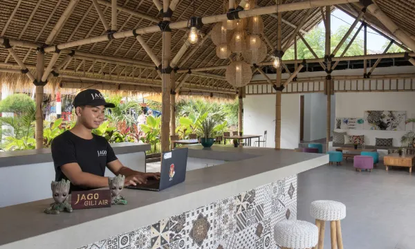 L'aeroporto più vicino è Aeroporto Internazionale di Lombok, che dista distanza in linea d'area dall' hotel: 49,3 km.Come arrivo dall'aeroporto più vicino a Jago Gili Air?