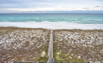 Stunning, and spacious 2 bedroom, 2 bath gulf front beach condo. Escape to the hypnotic lure of beach life in a quality furnished and well-appointed tropical get-away with the comforts of home. Expansive glass doors and balconies overlook the renowned north Florida ‘sugar white’ sands and emerald Gulf waters. Inspiring uncrowded panoramic views of ever-changing nature and beach life. Beachside outdoor pool. King bed in master with ensuite bathroom. Two twin beds in second bedroom with ensuite bathroom. Kitchen is well equipped and open to both dining and living room. Attractive tile throughout. Large washer and dryer in unit. Cable HDTV, Blu-ray DVD streaming in living room. HDTV in master. Free Wi-Fi. Elevator. Pool with lounges, tables, bathrooms, outdoor shower.